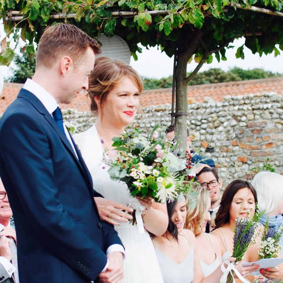Garden weddings at Barn Drift, Norfolk. Set within private family farmland on the North Norfolk coast, the house is surrounded by acres of organically gardened grounds with panoramic views across the Glaven Valley, out to Blakeney Point and the sea beyond.