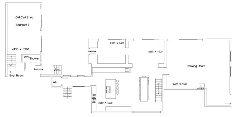 Barn Drift offers a really remarkable and comfortable home with space and air in a unique and stunning location in one of the most beautiful areas of England. Designed with ease of access in mind all ground floor areas are fully wheel chair accessible from the drive into the hall, kitchen, dining room, drawing room and ground floor loo. The hall, kitchen and drawing room all have wide doors leading onto the paved terrace, sheltered under 4 Persian Ironwood trees providing extensive shade. With 8 double or twin bedrooms (the choice being yours), 7 bathrooms, 6 of which are ensuite with a collection of showers, rain rooms and bathrooms, the accommodation is excellent and suitable for guests with a variety of requirements. While no bedroom is suitable for guests permanently in wheelchairs, six of the 8 are easily accessed via 6 steps with excellent handrails fixed to the wall. The generous design of the house, each room beautifully decorated, offers complete privacy along with immense comfort and wonderful open living spaces in which to safely enjoy large parties. The property has been expertly and sympathetically restored to an exceptionally high standard. With small or large parties in mind care has been taken to retain the unmistakable charm of the ancient building, combined with every modern convenience, including high speed WiFi opening windows in all rooms and good lighting. Accessed from an established farm track that takes you right up to the front door and to The Hangar – all totally surrounded by private farm land, fields, meadows and woodland Barn Drift stands in its own extensive grounds, within which are three sheltered, original walled gardens accessed directly from the house through large, south facing French doors. The Hangar and its loo all on one level is fully accessible to all without restriction.